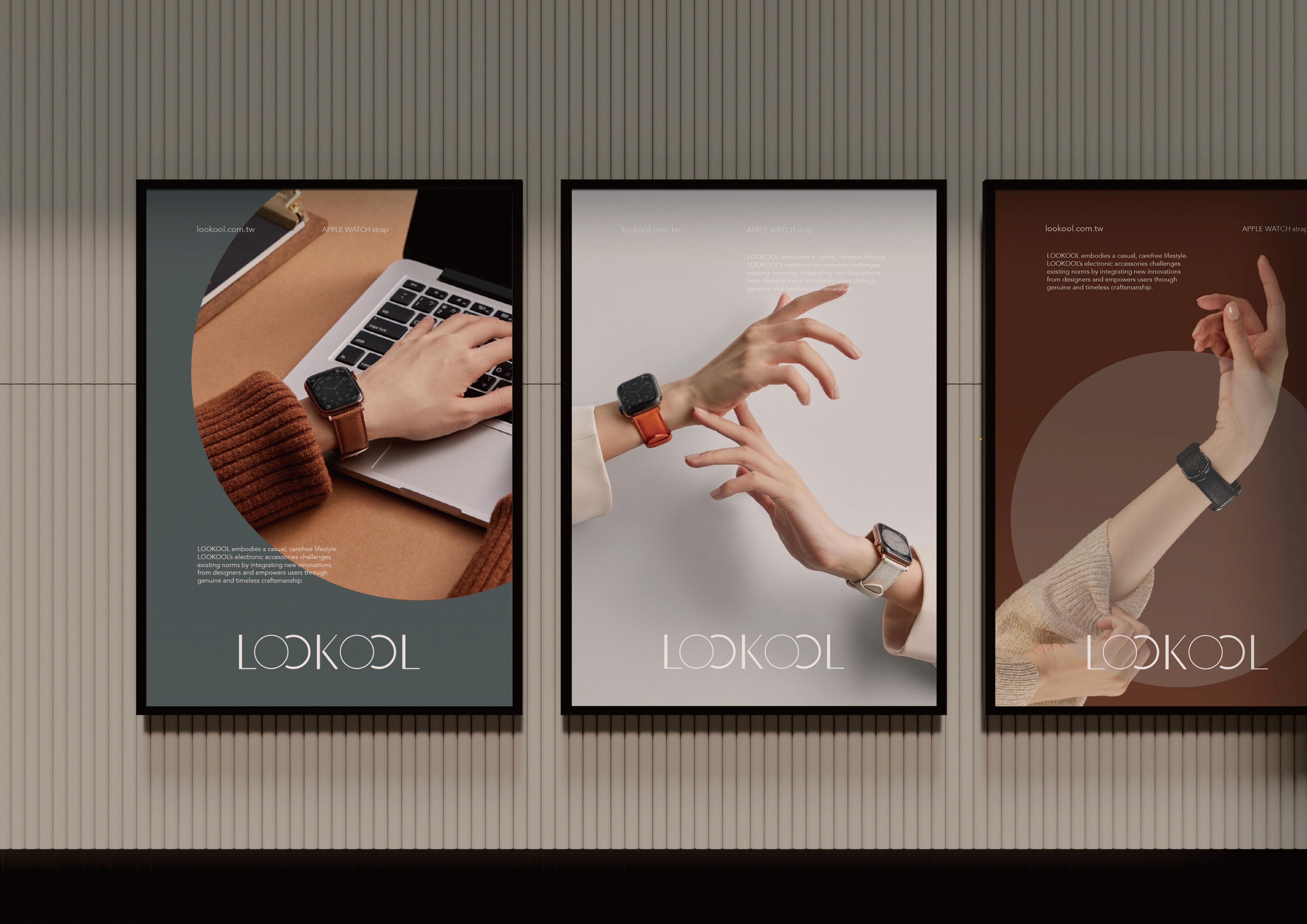 「玩轉3C配件,盡顯率性美學」 LOOKOOL象徵率性、恣意的生活態度。 透過3C配件,結合設計師創意迸發的新穎,為你打破現有框架,加以老師傅慢針細縫的溫度,給予力量實踐自我。 Reinventing Electronic Accessories & Challenging Aesthetic Norms LOOKOOL embodies a casual, carefree lifestyle. LOOKOOL’s electronic accessorie challenges existing norms by integrating new innovations from designers and empowers users through genuine and timeless craftsmanship. 設計概念/ 品牌標準字搭配Apple產品我們選用細緻的黑體來詮釋,結合時間與光影的元素於筆畫其中,傳達品牌歷久彌新與日常陪伴的概念,更以logo中取出圓來象徵工藝與科技完美結合的平衡感,透過一系列多色的風格定位來展現LOOKOOL摩登的形象,期望未來將台灣現代工藝品牌推向國際。